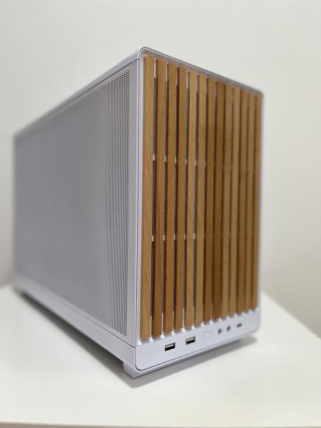 מחשב שקט מאוד, במארז קומפקטי מעוצב בלבן נקי עם פאנל קדמי מעץ, פילטרים נשלפים נגד אבק, ונראה פשוט מדהים על כל שולחן עבודה